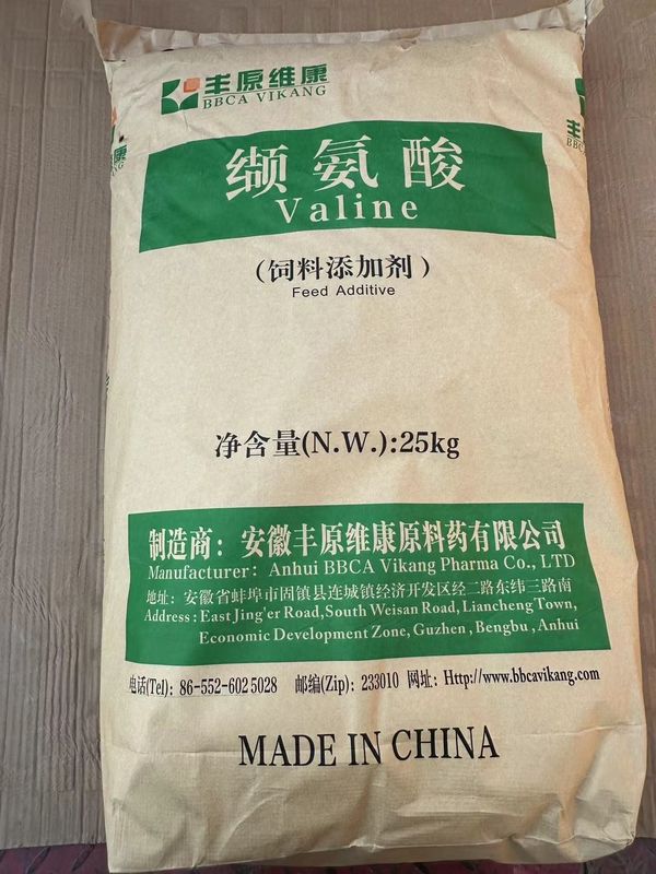 Valine is an essential amino acid for livestock and poultry. It promotes protein synthesis, inhibits protein decomposition, enhances immunity, and plays an important role in growth and development of the body. Animals cannot synthesize it by themselves, and it must be obtained from the diet to meet their nutritional needs, so Valine is widely used in compound feed and young piglet and poultry feed.